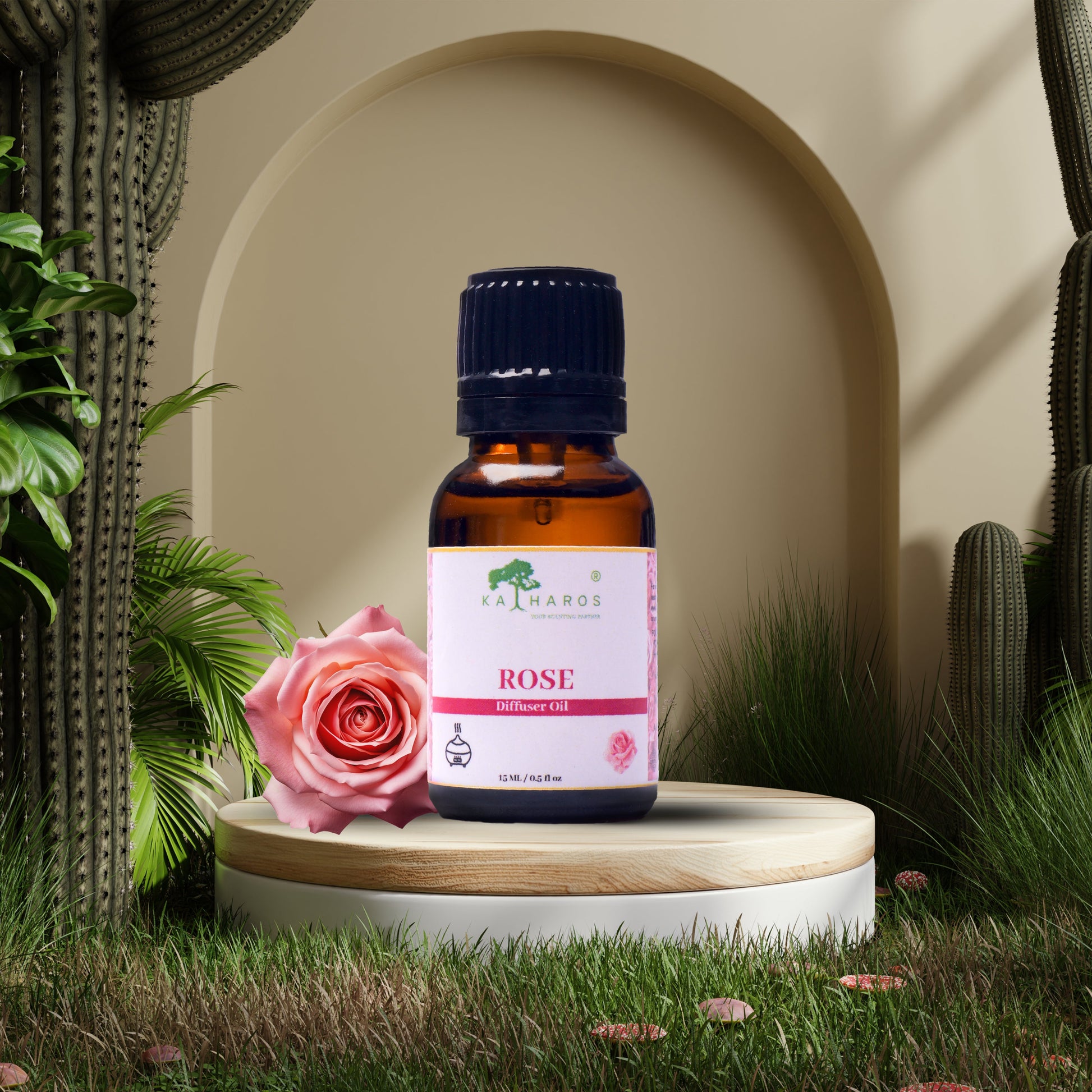 Rose Diffuser Oil: Immerse yourself in the enchanting fragrance of our rose diffuser oil. Crafted with care, our premium rose oil offers a captivating floral scent that fills your space with elegance and tranquility. Simply add a few drops to your diffuser or potpourri to create a serene and inviting atmosphere.