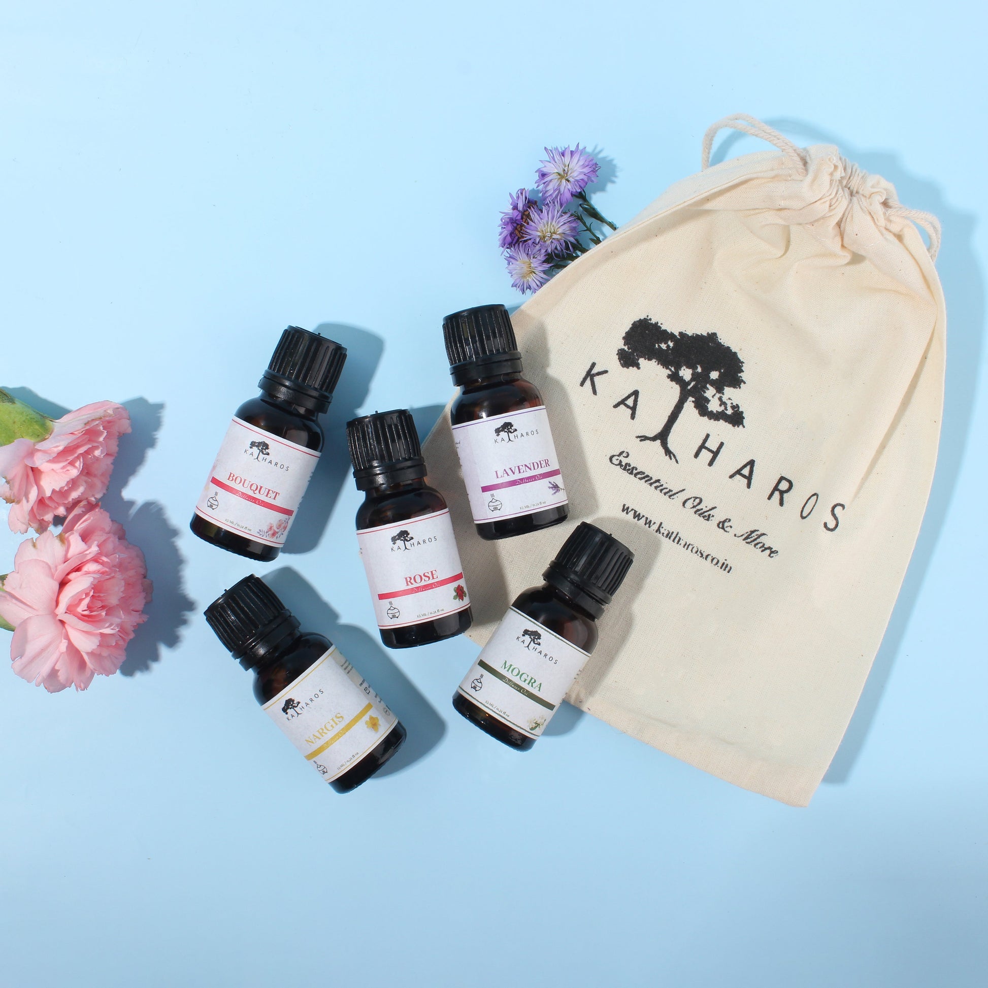Floral Aroma Diffuser/Humidifier Oil - Rose, Lavender, Mogra, Nargis, Bouquet 15 mL Each Kit