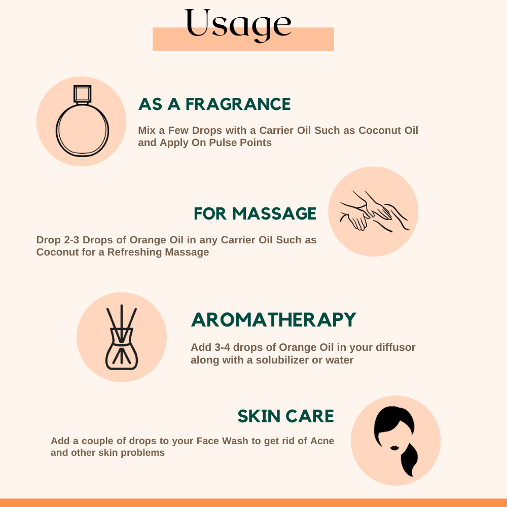 Orange essential oil is loved for its aroma and health benefits. Aromatherapy calms and uplifts. Orange oil naturally disinfects and cleans. Pure, potent, synthetic-free cold-pressed orange essential oil.